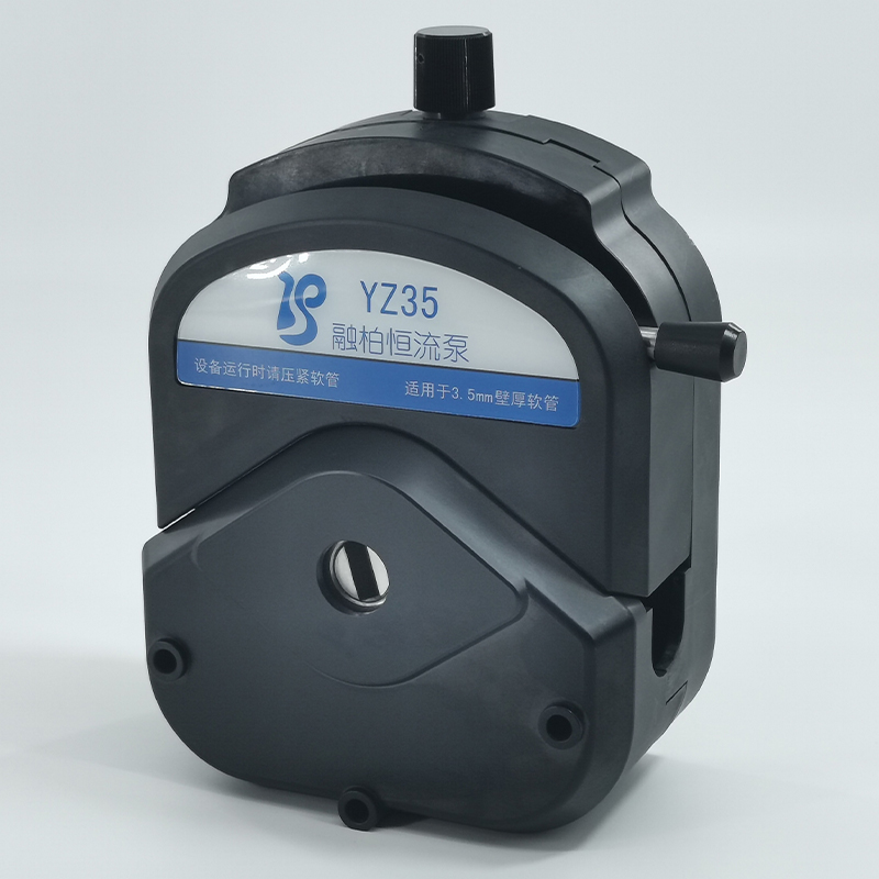 YZ35泵頭的參考流量范圍740-12000(ml/min) 轉(zhuǎn)速范圍60-600(rpm),適用73#82#軟管,滾輪數(shù)3