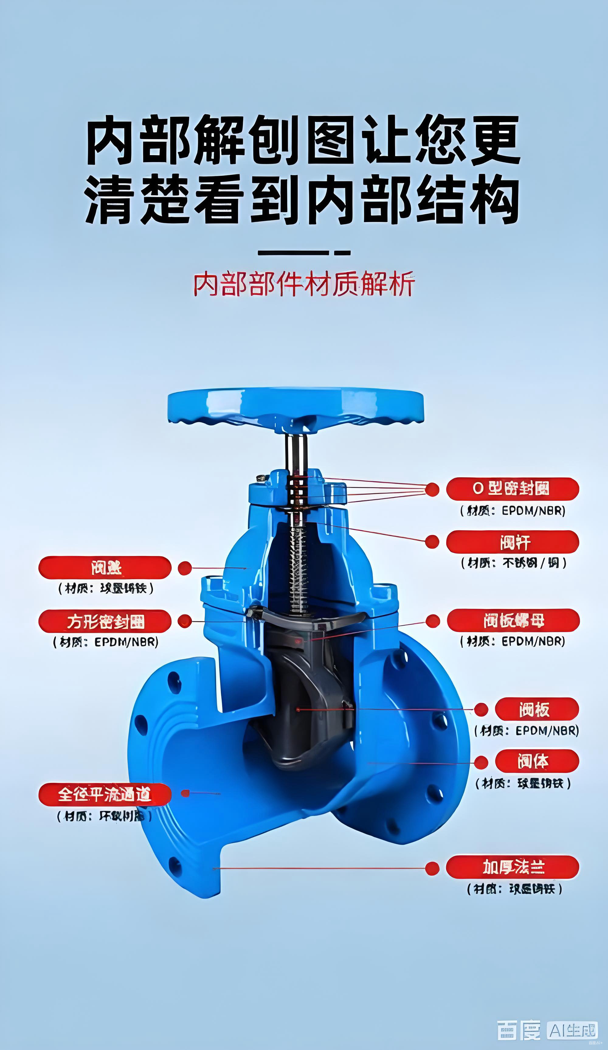 • 閘板整體包覆三元乙丙橡膠或丁腈橡膠,密封可靠,減少泄漏風險 。 ‌
