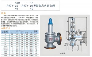 A42Y-16C/DN40產品是一款全啟式安全閥,適用于工作溫度300℃的空氣、石油氣、液體等介質的設備和管路上,作為超壓保護裝置12。 產品規格和...